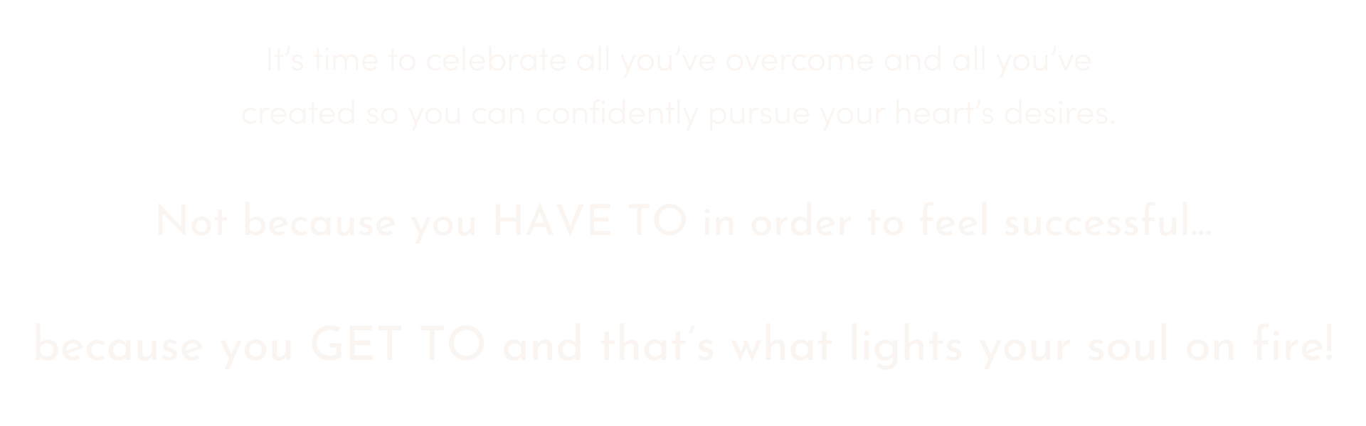 The results you create—and your experience of life—come more from what you think and feel than what you do. In our sessions, you’ll develop a Phoenix Mindset and create beliefs that empower you instead of hold you back. You’ll learn to process your emotions instead of avoiding them, freeing up energy, clarity, and courage to pursue your dreams with ease. And you’ll be guided through my signature S.P.A.R.K coaching process that makes this just the tip of the iceberg of the transformation that’s ahead.